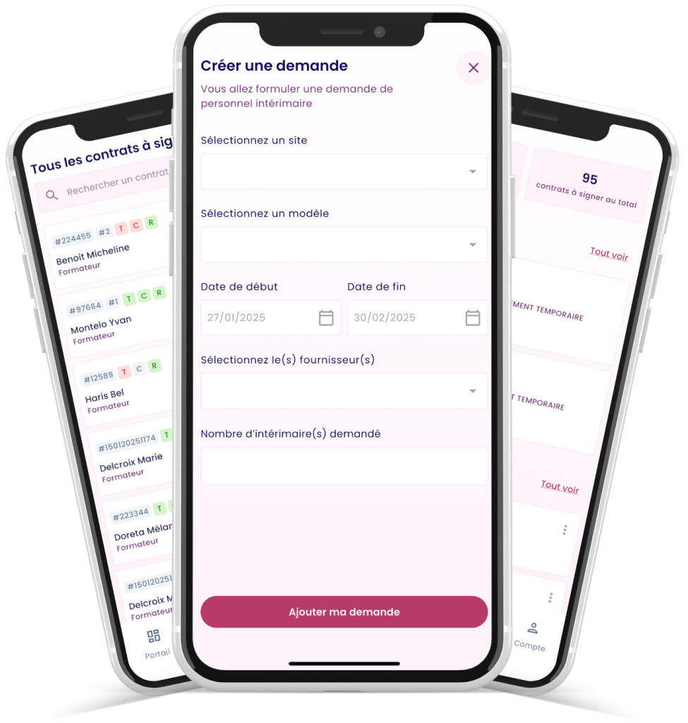 Simplifiez votre quotidien, gagnez du temps et gérez vos intérimaires directement depuis votre smartphone.